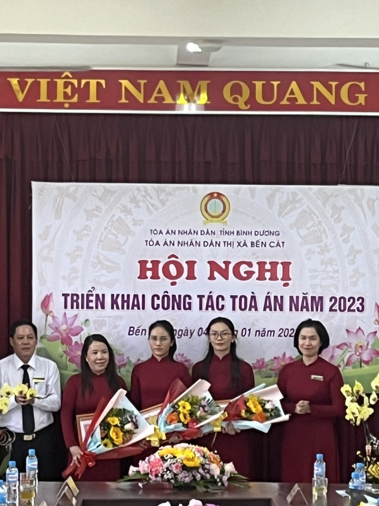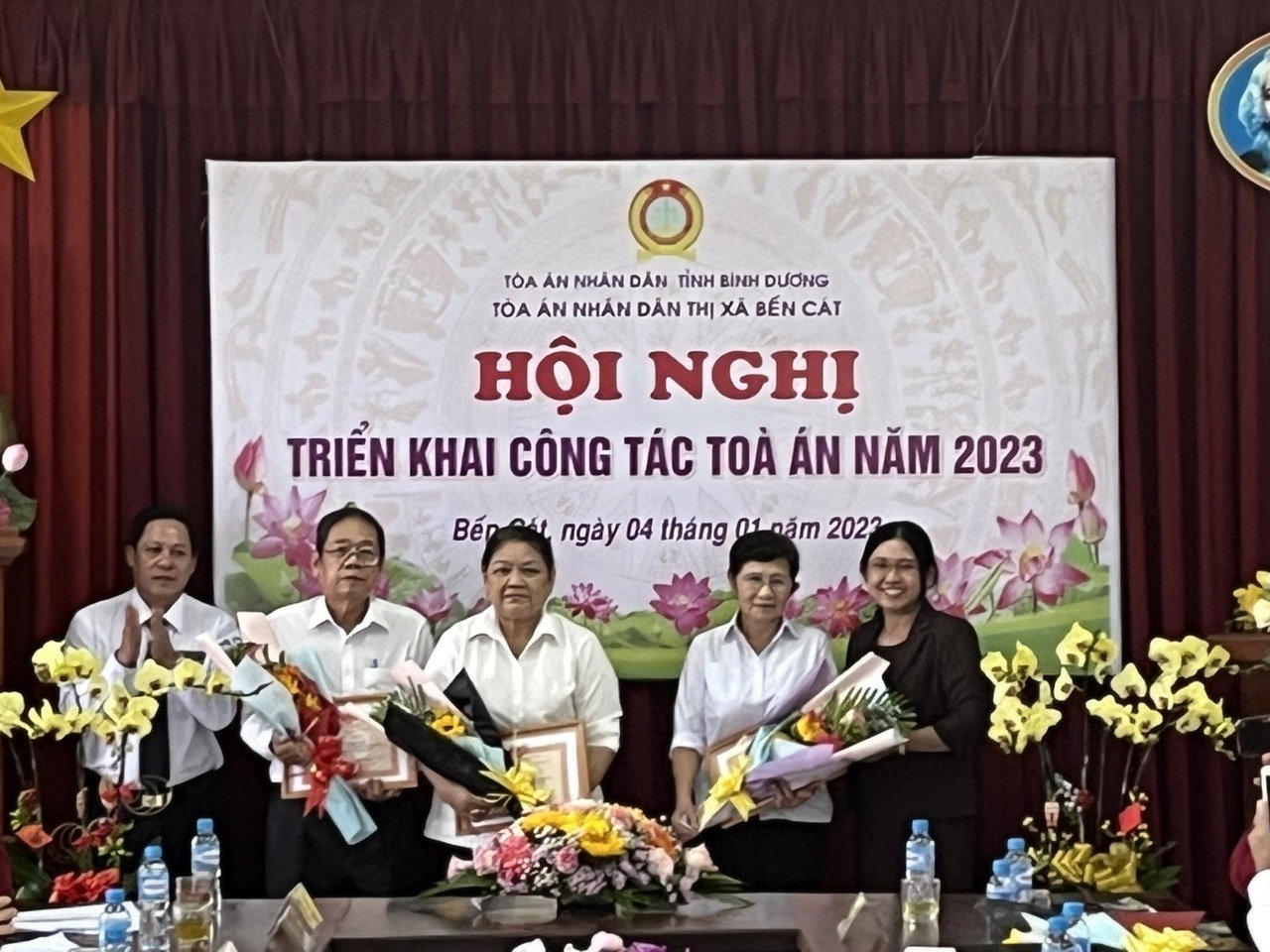 Dịp này, Tòa án nhân dân thị xã Bến Cát đã trao tặng bằng khen và giấy khen của Tòa án nhân dân Tối cao và Tòa án nhân dân tỉnh Bình Dương cho các tập thể và cá nhân đạt thành tích hoàn thành xuất sắc nhiệm vụ năm 2022.