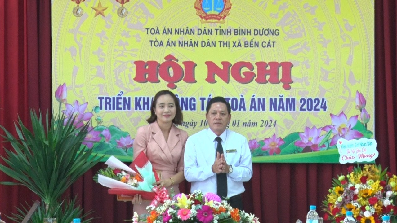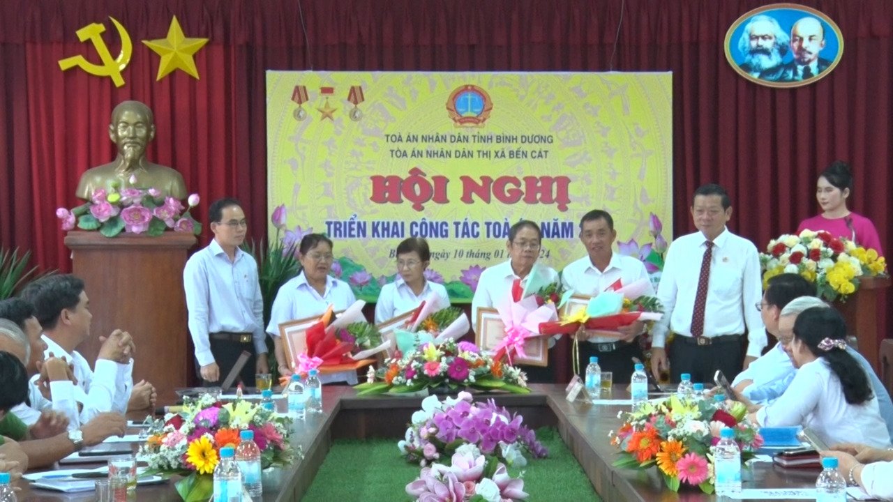 Dịp này, Tòa án nhân dân thị xã Bến Cát đã trao tặng bằng khen và giấy khen của Tòa án nhân dân Tối cao và Tòa án nhân dân tỉnh Bình Dương cho các tập thể và cá nhân hoàn thành xuất sắc nhiệm vụ năm 2024.