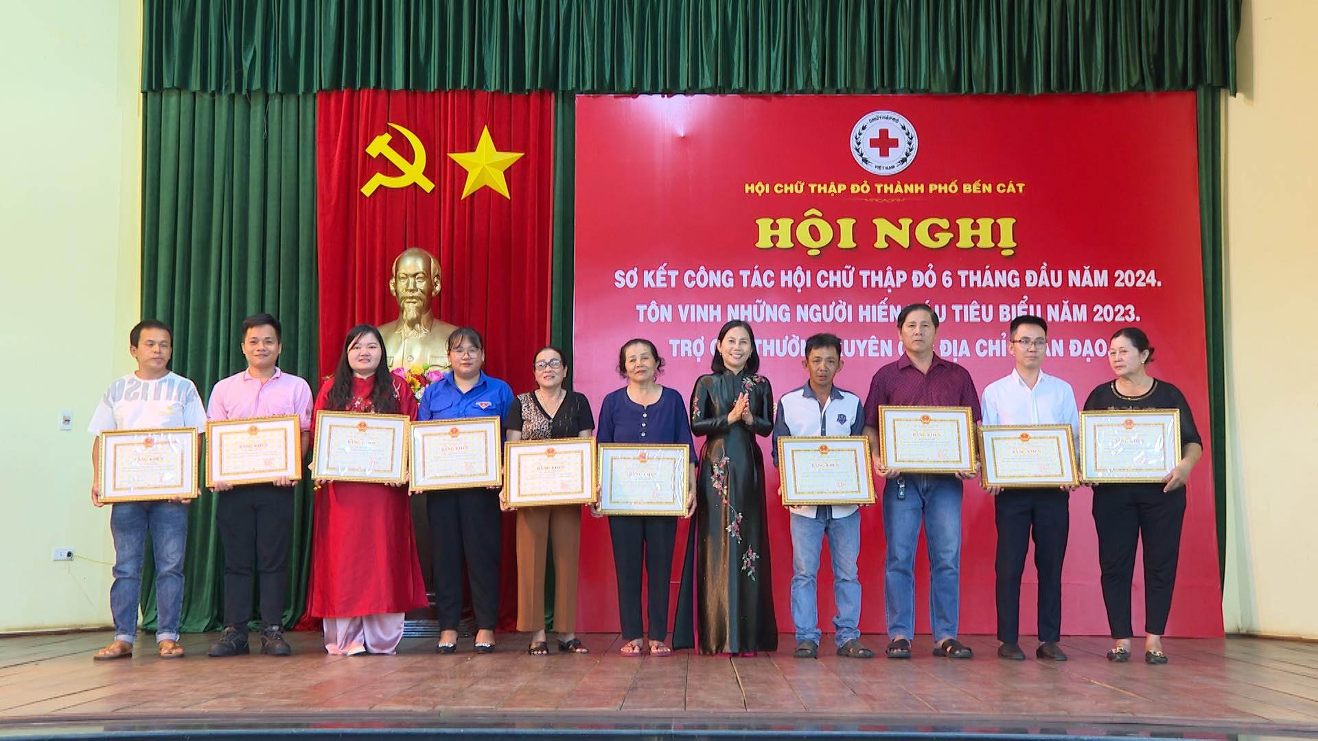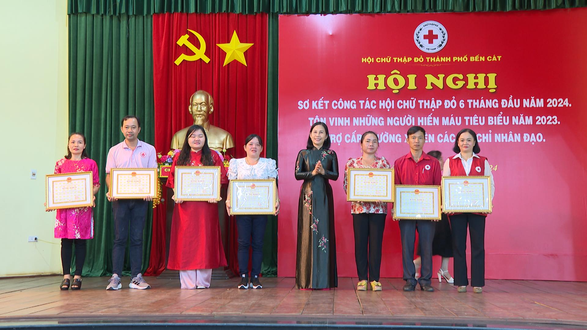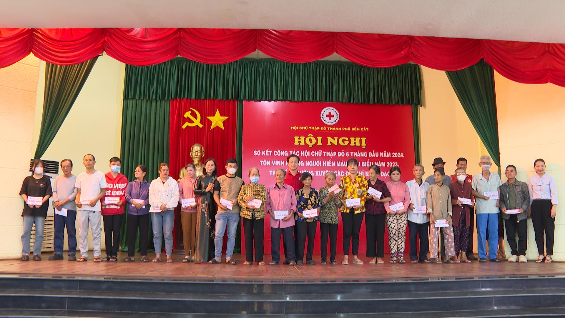 Dịp này, Trung ương Hội Chữ thập đỏ Việt Nam đã trao kỷ niệm chương “Vì sự nghiệp Nhân đạo” cho các cá nhân có nhiều đóng góp cho công tác chữ thập đỏ, khen thưởng cho các cá nhân đạt thành tích xuất sắc trong hoạt động phong trào Hội Chữ thập đỏ 2 năm liên tục (2022-2023); UBND tỉnh, Ban chỉ đạo HMTN tỉnh, UBND thành phố Bến Cát khen thưởng cho hơn 230 gia đình và tập thể, cá nhân hiến máu từ 5 đến 40 lần. Hội CTĐ thành phố đã trao trợ cấp thường xuyên 23 địa chỉ nhân đạo mỗi phần trị giá 1,5 triệu đồng.