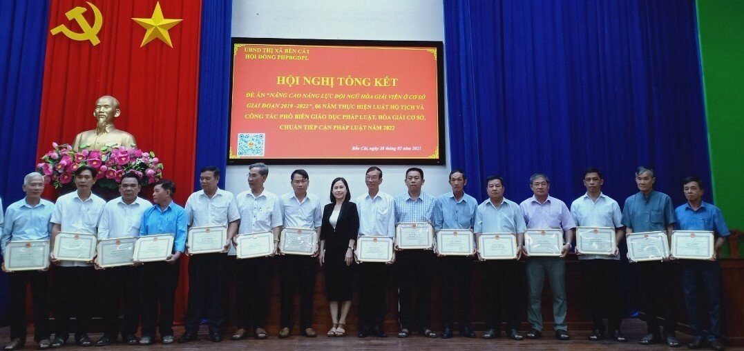 Dịp này, UBND thị xã khen thưởng cho các tập thể và cá nhân đạt thành tích xuất sắc thực hiện Đề án “Nâng cao năng lực đội ngũ hòa giải viên ở cơ sở giai đoạn 2019-2022”; 06 năm thực hiện Luật Hộ tịch và công tác phổ biến giáo dục pháp luật; hòa giải ở cơ sở; chuẩn tiếp cận pháp luật năm 2022, công tác phổ biến giáo dục pháp luật năm 2022.