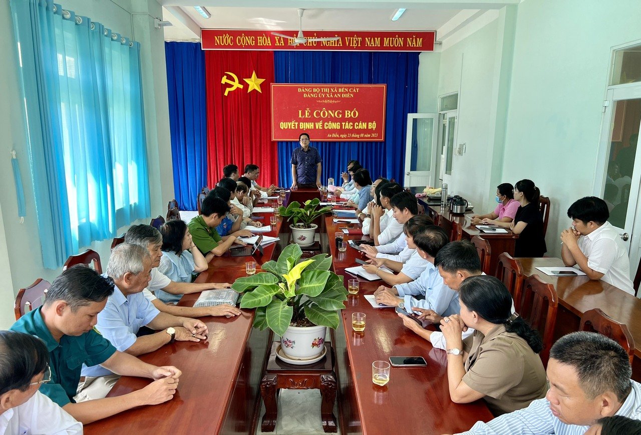 Ngày 23/8, Đảng ủy xã An Điền tổ chức công bố và trao quyết định về công tác cán bộ. Đến dự có đồng chí Nguyễn Văn Thắng – Phó Trưởng Ban Tổ chức Thị ủy, đồng chí Nguyễn Thanh Phong – Phó Trưởng Ban Tuyên giáo Thị ủy, đồng chí Lê Sỹ Thọ - Phó Chánh Văn phòng Thị ủy.