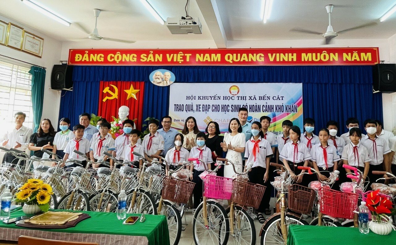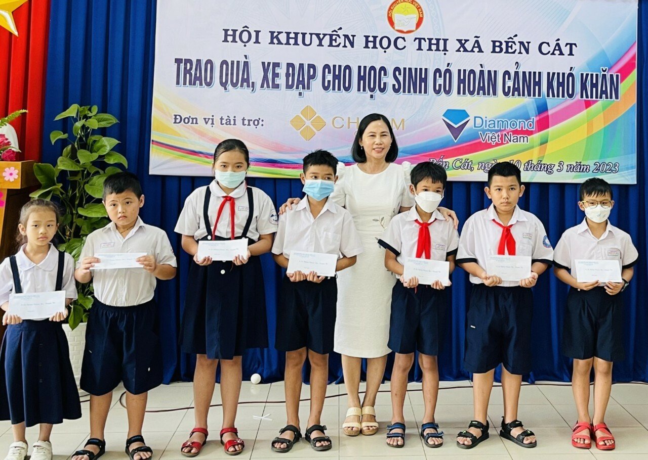Nhằm khích lệ tinh thần hiếu học của các em học sinh nghèo, học sinh có hoàn cảnh khó khăn, ngày 10/3, Hội Khuyến học thị xã Bến Cát phối hợp cùng Phòng Giáo dục và Đào tạo thị xã tổ chức chương trình trao tặng xe đạp và học bổng hỗ trợ học sinh nghèo, học sinh có hoàn cảnh khó khăn trên địa bàn thị xã. Đến dự có bà Trần Thị Thảo – Phó Chủ tịch UBND thị xã.