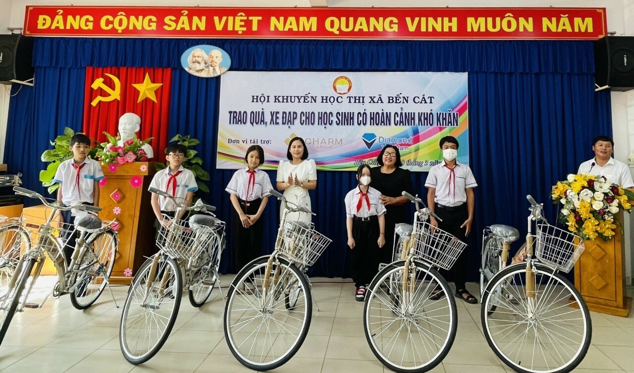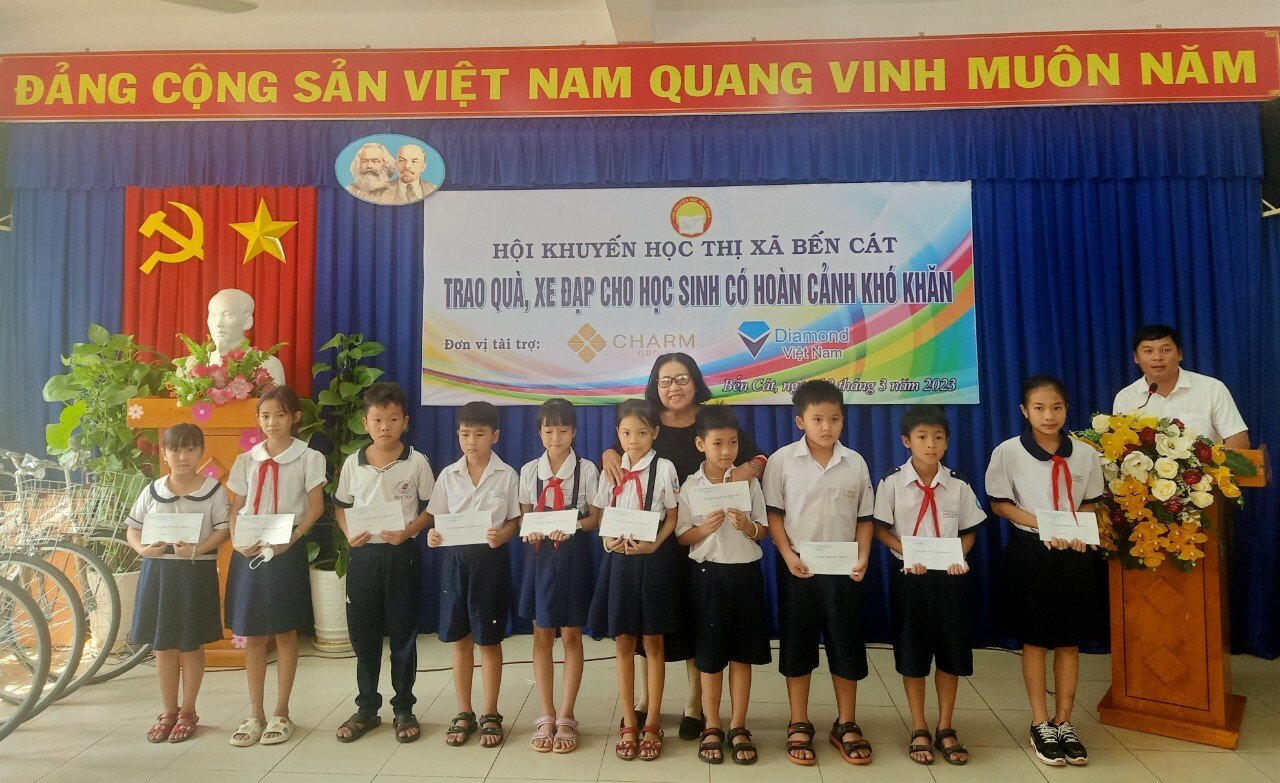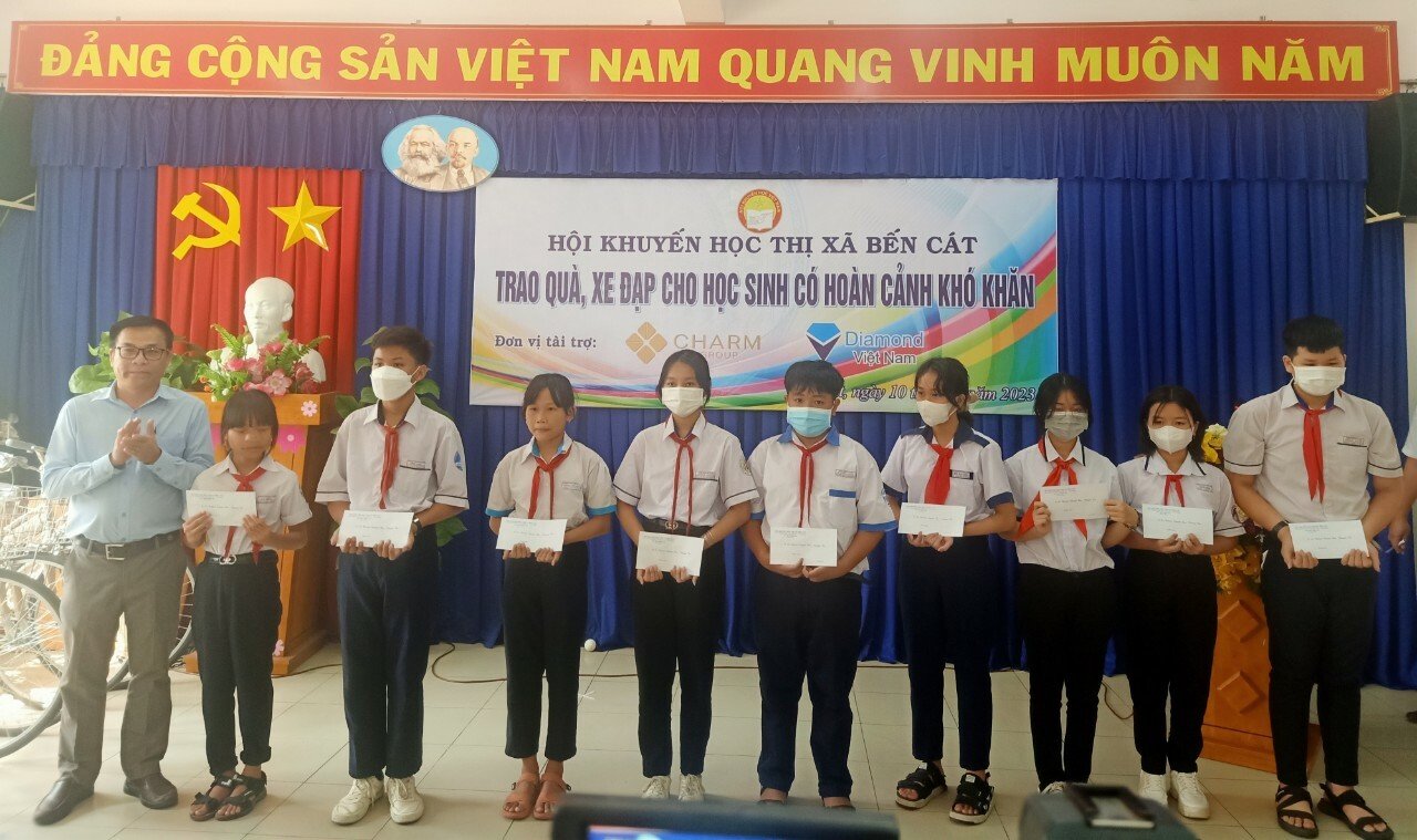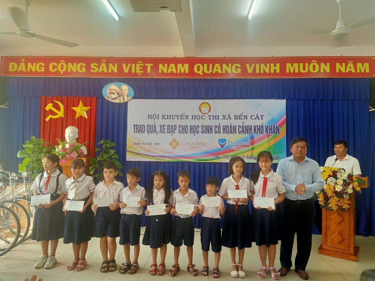 Tại buổi lễ, 20 em học sinh nghèo, học sinh có hoàn cảnh khó khăn thuộc các trường: Trung học cơ sở Hòa Lợi; Trung học cơ sở An Điền; Trung học cơ sở Bình Phú; Trung học cơ sở Chánh Phú Hòa; Trung học cơ sở Lê Quý Đôn; Trung học cơ sở Mỹ Thạnh và Trường Trung học cơ sở Thới Hòa được trao tận tay mỗi em 01 chiếc xe đạp do Công ty TNHH Diamond Việt Nam tài trợ.