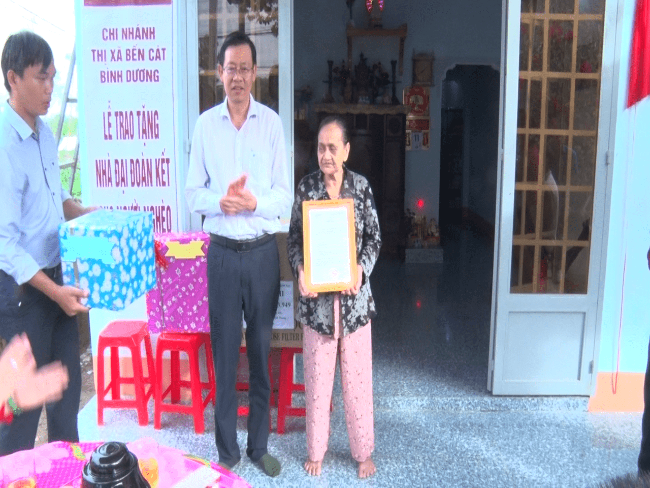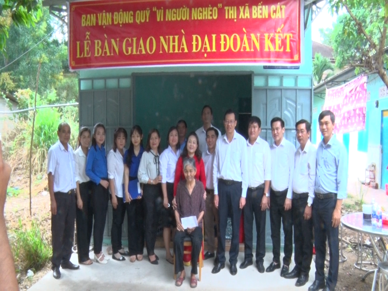 Ngày 11/01, Ban vận động “Quỹ vì người nghèo” thị xã Bến Cát tổ chức trao tặng nhà đại đoàn kết cho hộ nghèo khó khăn về nhà ở tại xã An Điền và xã An Tây. Đến dự lễ trao nhà có ông Trần Ngọc Cường – Phó Chủ tịch UBND thị xã, ông Nguyễn Trọng Quốc – Phó Chủ tịch Ủy ban MTTQ Việt Nam thị xã, cùng đại diện lãnh đạo xã An Điền và An Tây.