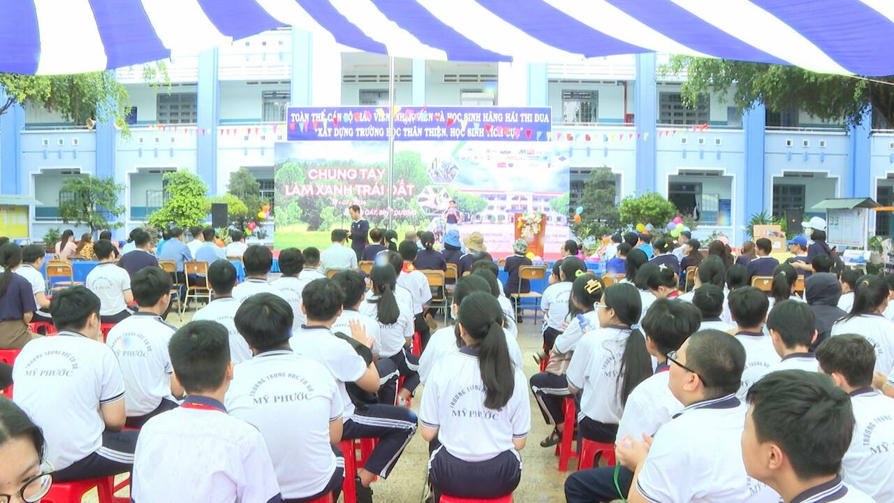 Sáng ngày 18/7, tại trường THCS Mỹ Phước, Thương hiệu Adidas và các nhà máy Adidas, Phòng Giáo dục và Đào tạo thành phố cùng các trường tiểu học, THCS cùng phối hợp tổ chương trình “Chung tay làm xanh trái đất” năm 2024. Đến dự có ông Nguyễn Văn Phong - Phó Giám đốc Sở Giáo dục và Đào tạo tỉnh, ông Lê Minh Vũ – Phó Trưởng Phòng Giáo dục và Đào tạo thành phố, cùng đông đảo giáo viên và học sinh thuộc khối Tiểu học và THCS.
