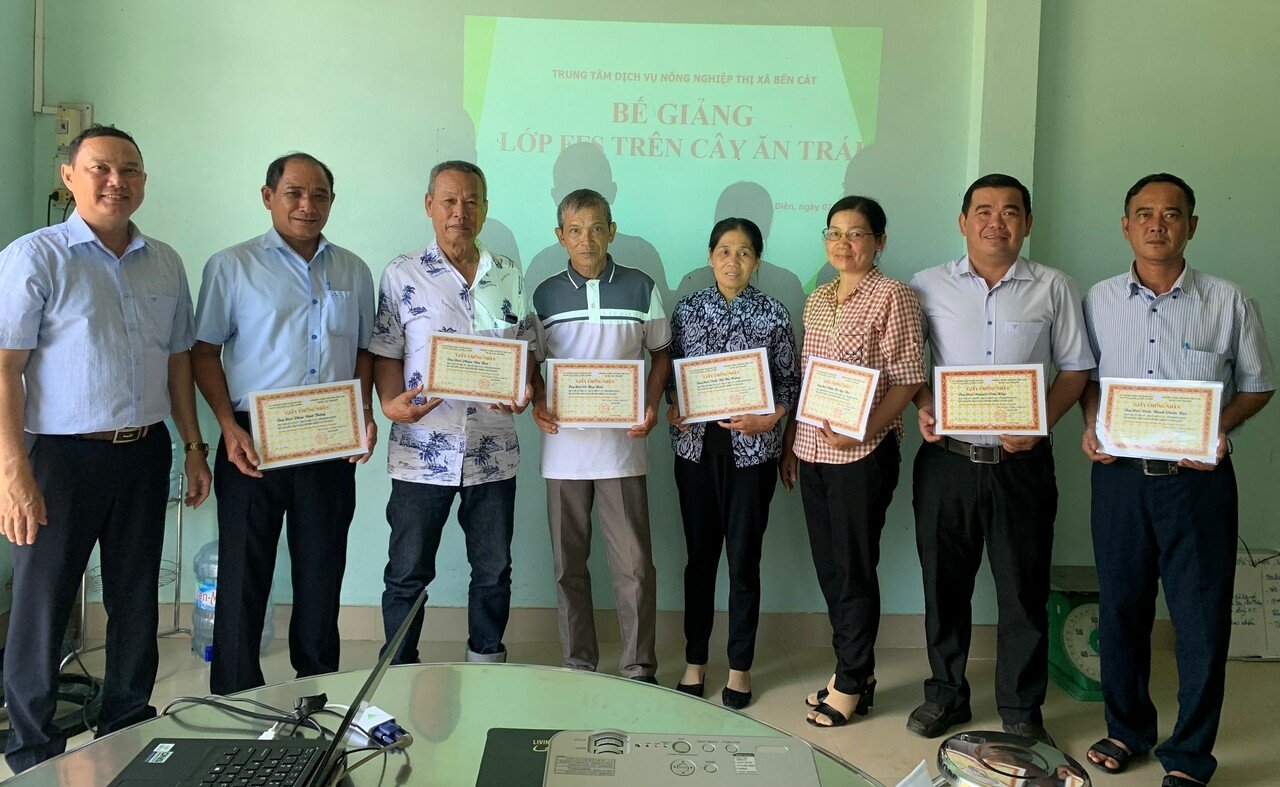 Trung tâm dịch vụ nông nghiệp Bến Cát tổ chức lớp tập huấn đào tạo huấn luyện khuyến nông theo phương pháp hiện trường (FFS)