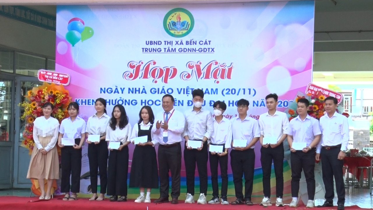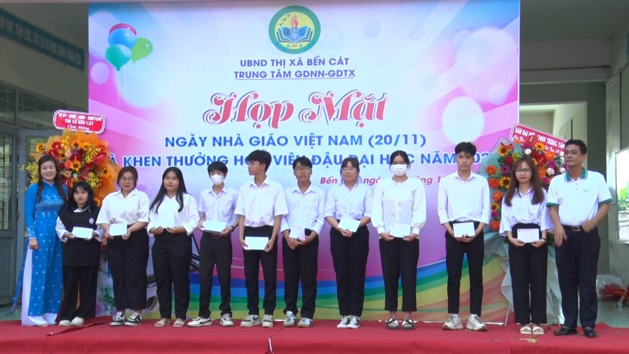 Dịp này, các tổ chức, doanh nghiệp, cá nhân, mạnh thường quân đã trao nhiều phần quà ý nghĩa cho Quỹ khuyến học khuyến tài của Trung tâm. UBND tỉnh, UBND thị xã trao danh hiệu chiến sĩ thi đua cơ sở, bằng khen cho các tập thể, cá nhân có thành tích “Hoàn thành xuất sắc nhiệm vụ” năm học 2022-2023. Trung tâm khen thưởng cho 33 học viên thi đỗ vào các trường đại học, mỗi suất trị giá 01 triệu đồng.