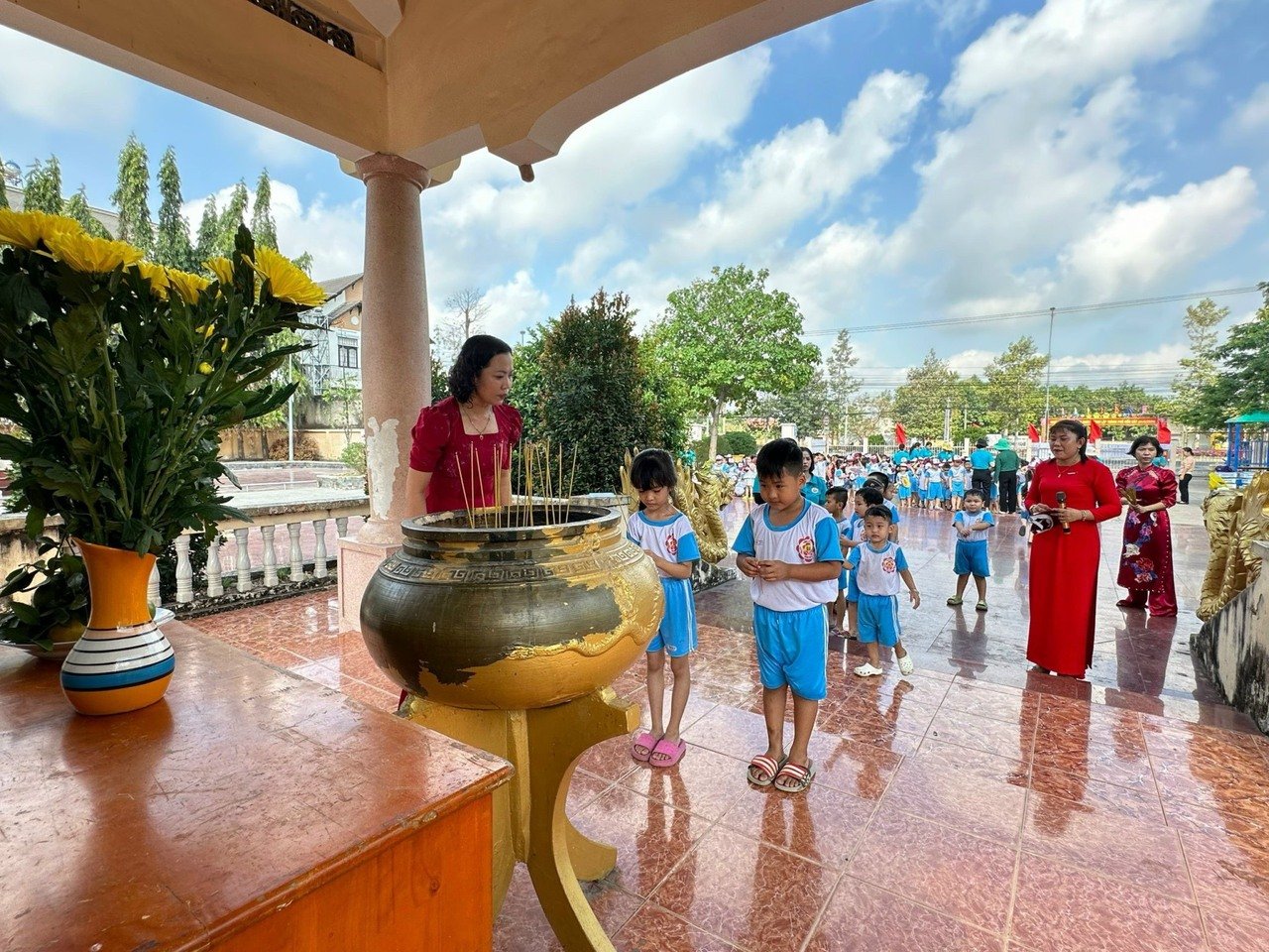 Tại lễ viếng, đại diện lãnh đạo UBND phường, cô và trò trường mầm non Chánh Phú Hòa đã dâng hương và cùng nhau ôn lại truyền thống đấu tranh hào hùng, giữ nước và dựng nước của dân tộc.