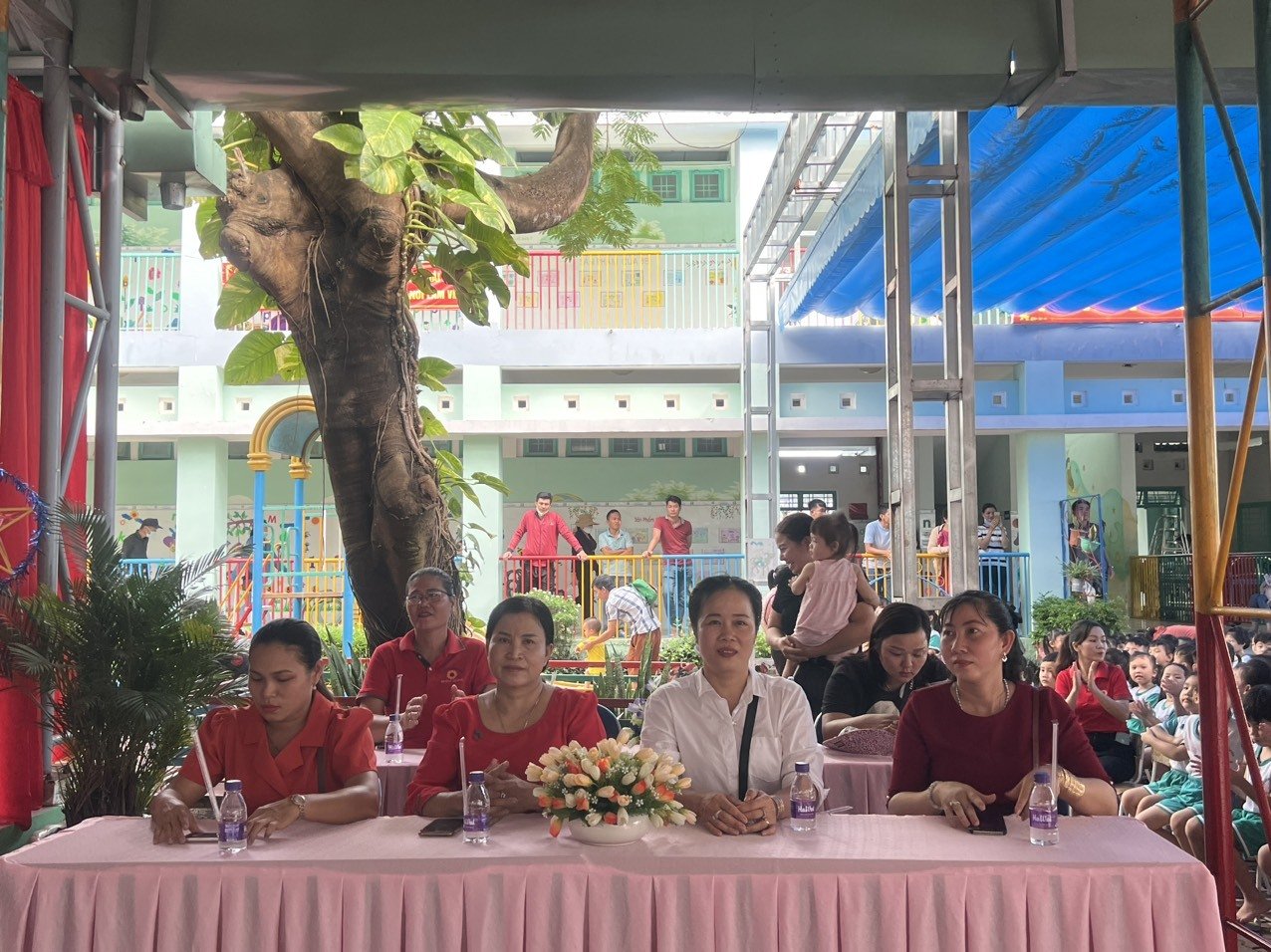 Tại chương trình đã diễn ra nhiều nội dung sinh động với nhiều sắc màu vui tươi như: múa lân sư rồng, giao lưu chú Cuội - chị Hằng, các tiết mục văn nghệ vui tươi, sinh động, dễ thương do các bé của trường biểu diễn như: Trăng tròn tròn; Ông trăng miệng cười; Chú cuội chơi trăng và tham gia phá cổ.