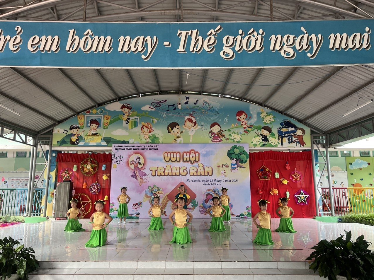 Chiều ngày 28/9, trường Mầm non Hướng Dương tổ chức chương trình vui Trung thu với chủ đề “Vầng trăng ước mơ” cho tất cả các em học sinh của trường.