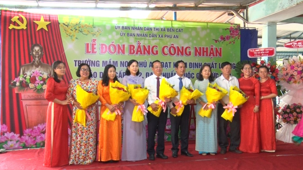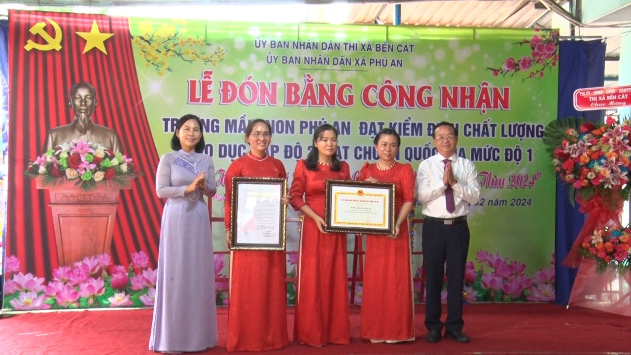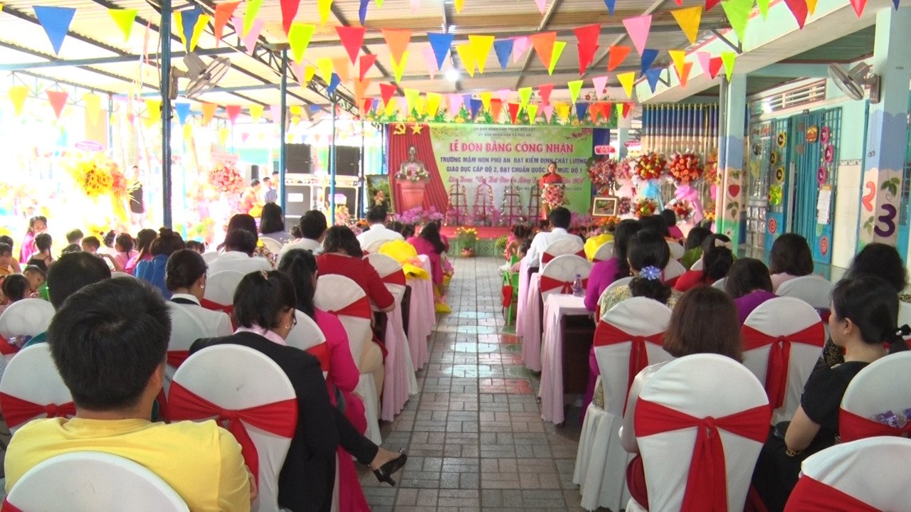 Trường Mầm non Phú An đón bằng công nhận đạt kiểm định chất lượng giáo dục cấp độ 2 và đạt chuẩn quốc gia mức độ 1