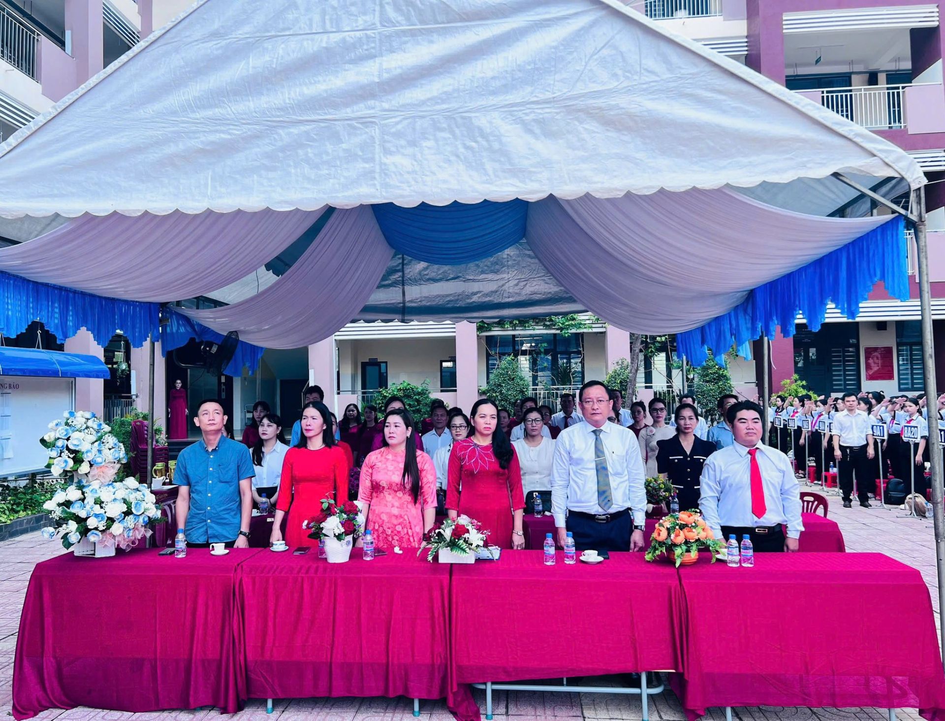 Đến dự và chung vui với thầy trò Nhà trường có ông Nguyễn Trọng Ân – Bí thư Đảng ủy, Chủ tịch HĐND phường Bến Cát, cùng đại diện các ban ngành, đoàn thể địa phường, phụ huynh học sinh.