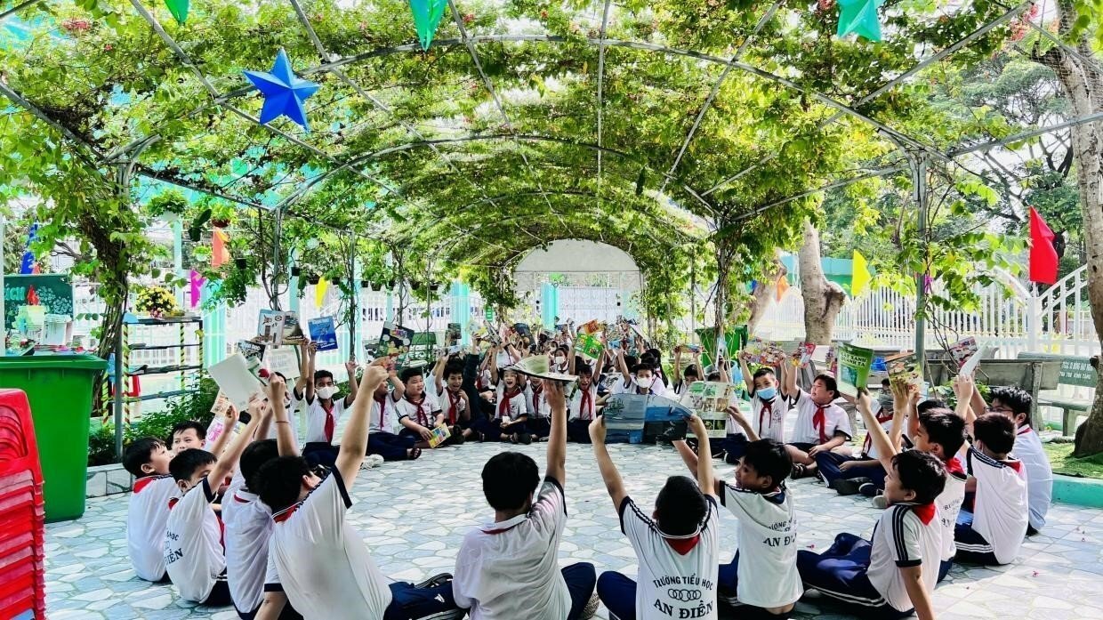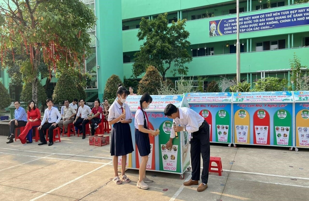 Theo đó, trường Tiểu học An Điền đã xây dựng các mô hình như: mô hình “Nhà vệ sinh thông minh, xanh - sạch - đẹp” đảm bảo phục vụ cho nhu cầu thiết yếu của học sinh và thông qua đó để giáo dục học sinh nâng cao ý thức bảo vệ môi trường và giữ gìn vệ sinh chung. Mô hình “Ngôi nhà kế hoạch nhỏ” giúp học sinh nâng cao nhận thức về bảo vệ môi trường, từng bước hình thành thói quen phân loại rác thải tại nguồn. Phụ trách Đội và giáo viên tuyên truyền, hướng dẫn các em phân biệt các loại rác thải hữu cơ, vô cơ và rác thải tái chế; ý nghĩa màu sắc của các tấm biển gắn ở từng loại thùng rác để học sinh bỏ rác đúng nơi quy định, mô hình này giúp học sinh phấn khởi, thích thú vừa góp phần bảo vệ được môi trường, vừa xây dựng được nguồn quỹ để giúp đỡ các bạn có hoàn cảnh khó khăn.