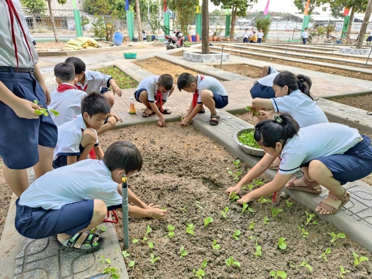 Hay như mô hình “Vườn rau sạch của em”, là một trong các hoạt động trải nghiệm, góp phần tạo cảnh quan xanh - sạch - đẹp trong trường học, rèn luyện kỹ năng sống cho học sinh. Hoạt động trồng, chăm sóc và thu hoạch rau là một trong những kỹ năng được nhà trường đặc biệt quan tâm nhằm tạo ra môi trường học tập thân thiện, giúp học sinh yêu lao động và quý trọng sản phẩm của mình tạo ra, qua hoạt động trải nghiệm giúp học sinh tự tin, mạnh dạn, biết cùng nhau hợp tác để hoàn thành nhiệm vụ, tạo được nguồn quỹ để giúp đỡ những bạn có hoàn cảnh khó khăn.