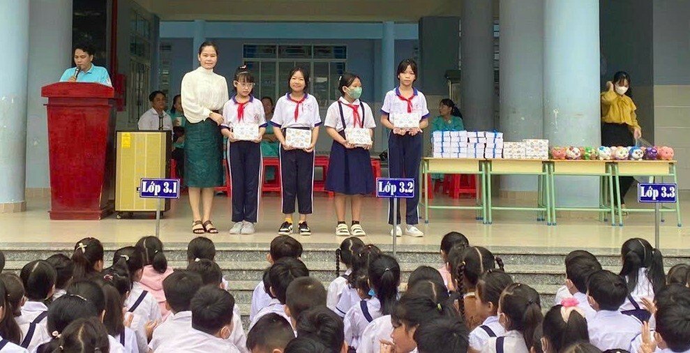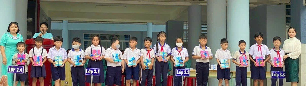 Dịp này, nhà trường tổ chức trao 20 phần quà cho học sinh có hoàn cảnh khó khăn, mỗi phần quà gồm 10 quyển tập trắng do Ban lãnh đạo ấp Dòng Sỏi tài trợ. Cùng với đó, trao giải hội thi các trò chơi trong ngày khai giảng năm học mới.