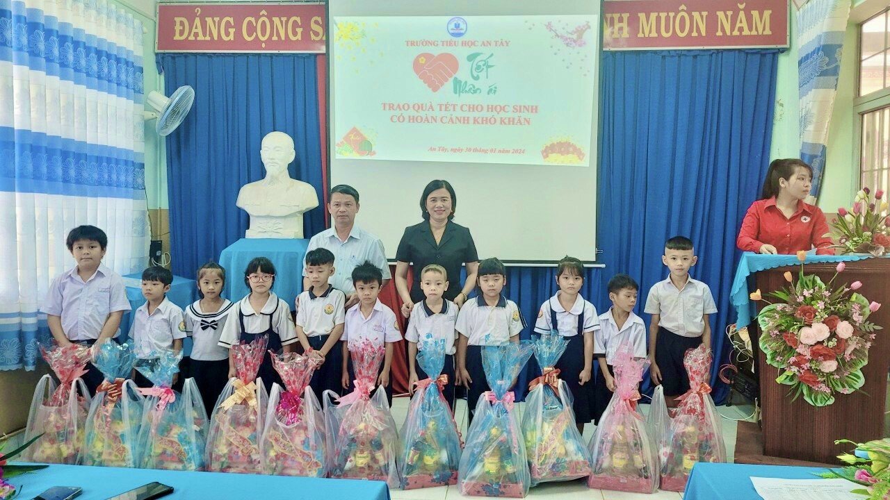 Nhân dịp tết Nguyên đán Giáp Thìn năm 2024, Trường Tiểu học An Tây tổ chức tặng 36 phần quà với số tiền hơn 11 triệu đồng cho học sinh có hoàn cảnh khó khăn của trường.