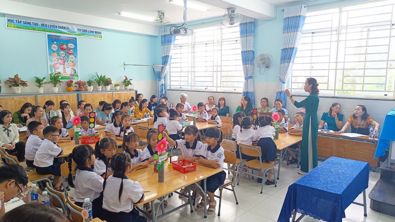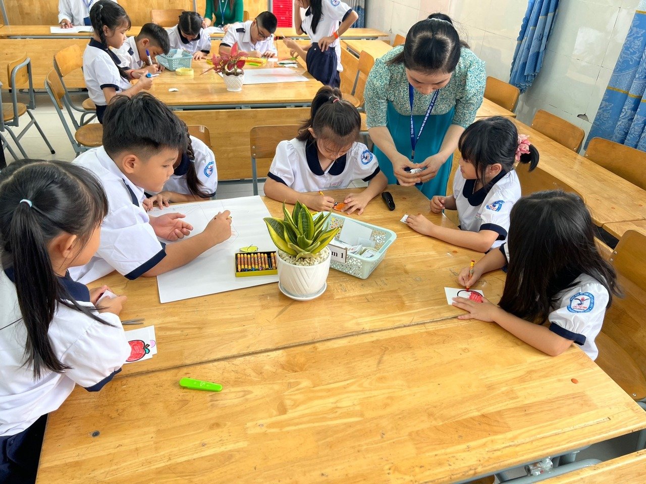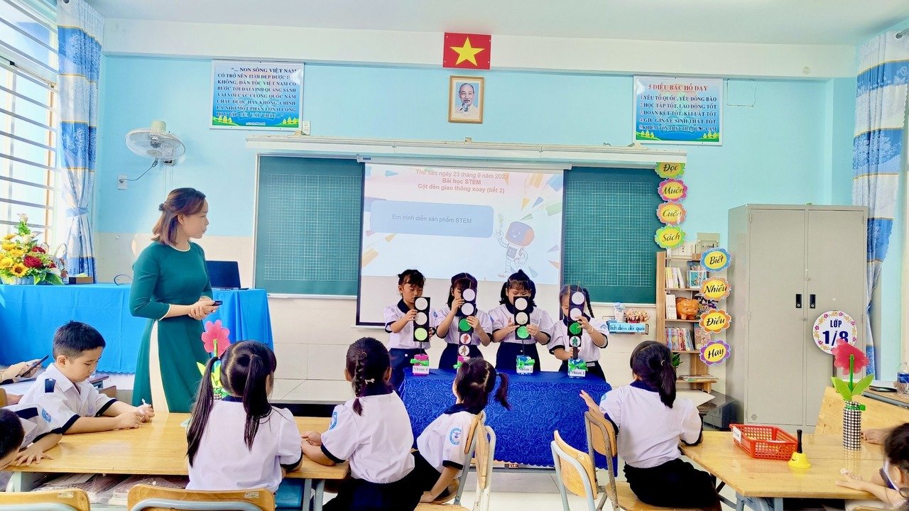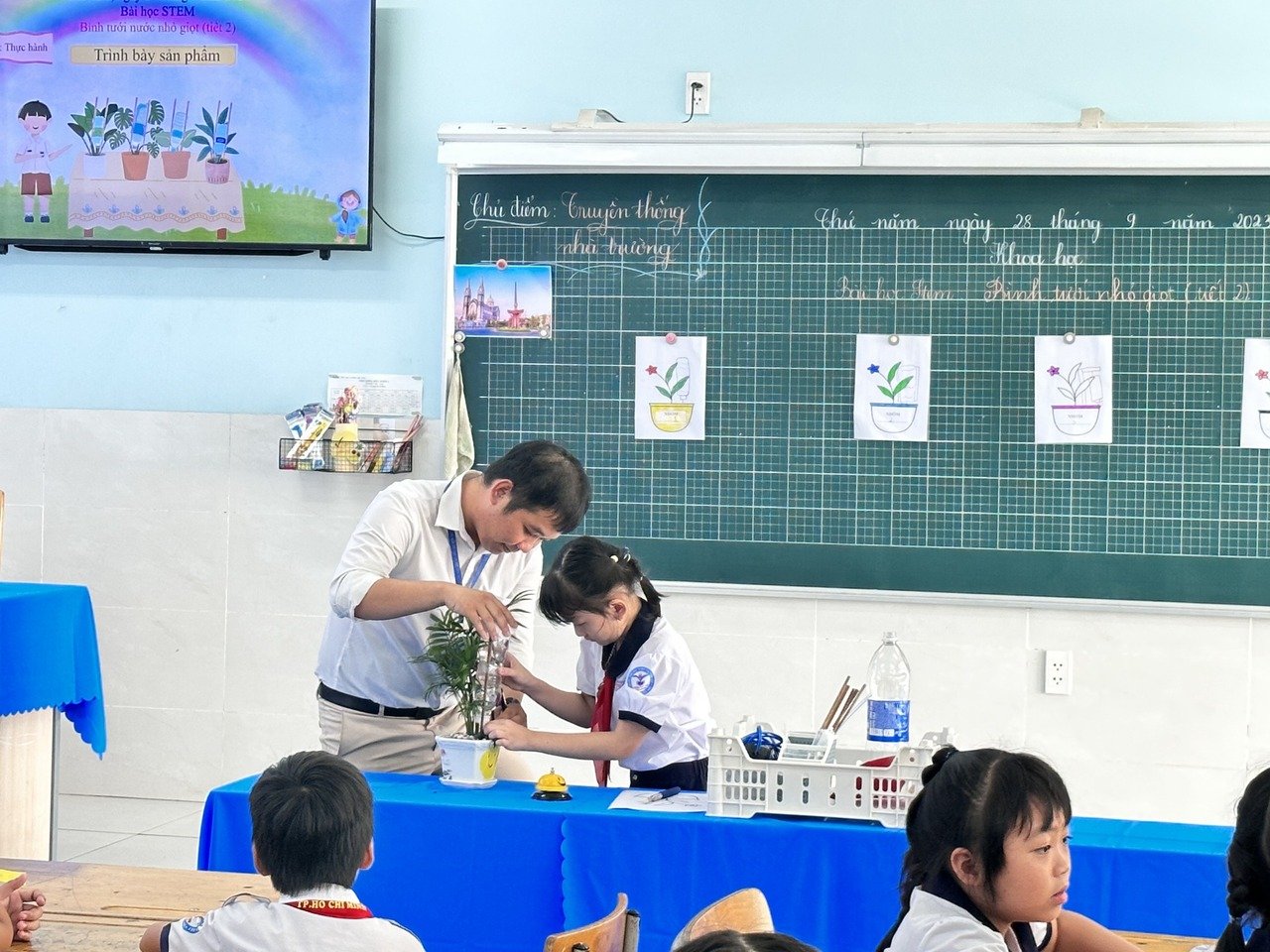Theo đó, ở tổ khối 1 đã tổ chức tiết dạy Bài học STEM: Cột đèn giao thông xoay. Khối 2 với bài Cây gia đình; khối 3 triển khai bài: Các thế hệ gia đình; Khối 4 tổ chức bài học STEM: Bình tưới nước nhỏ giọt tự động và đưa vào vận dụng thực tế tại các chậu trang trí cây xanh tại lớp học. Thông qua nghiên cứu, giảng dạy, các tổ khối đã rút ra được quy trình của giáo dục STEM, các học sinh được cùng nhau thảo luận đưa ra vấn đề, sau đó bằng kiến thức nền xử lý vấn đề, đề xuất ý tưởng, thiết kế kỹ thuật, tổ chức thi công, ra bản mẫu và thử nghiệm, học sinh tự rút ra ưu điểm, hạn chế, tiến hành điều chỉnh thiết kế để từ đó cải tiến tốt hơn sản phẩm.