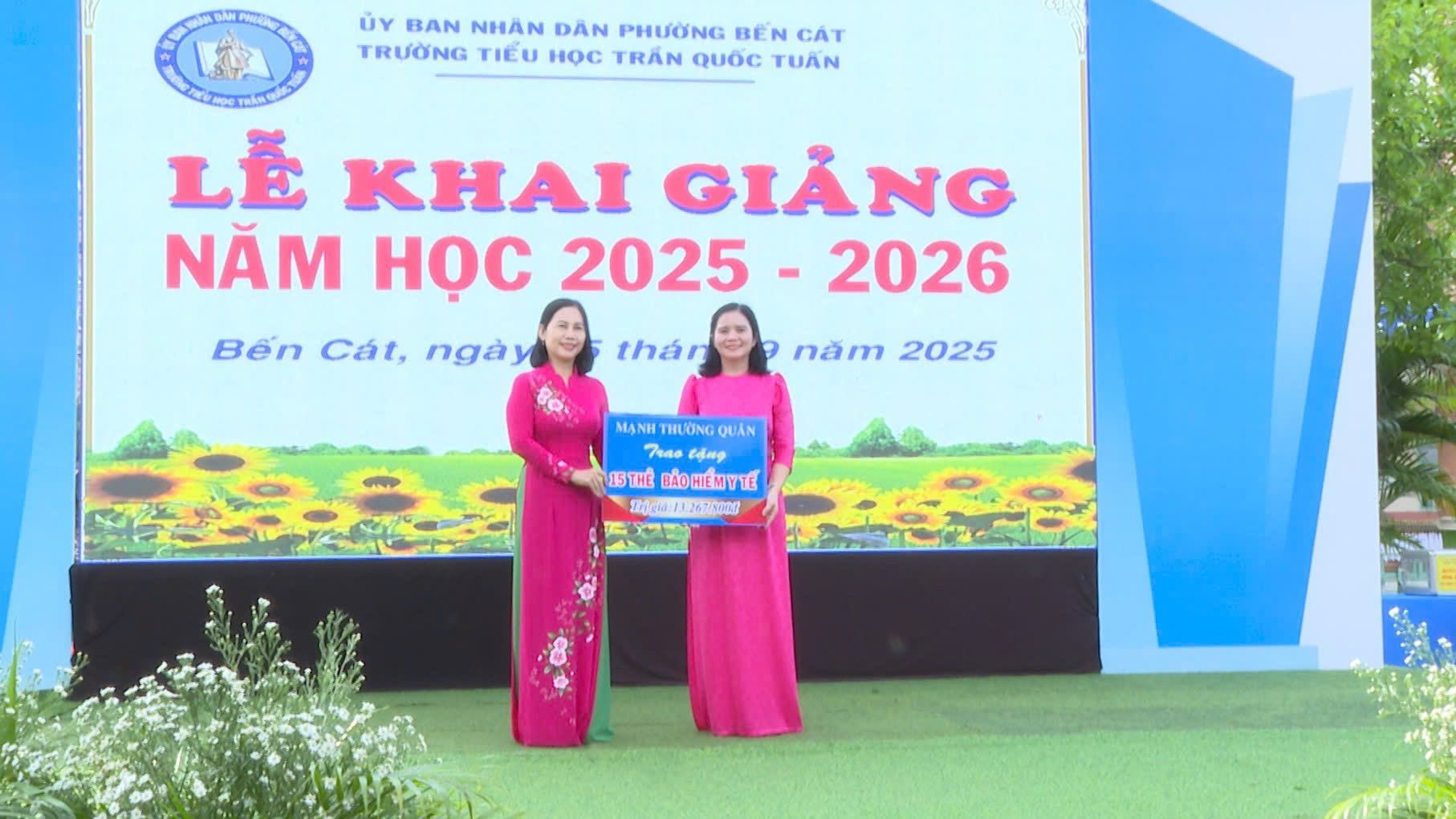 Hòa chung không khí vui tươi, phấn khởi của cả nước chào đón năm học mới, ngày 05/9, trường Tiểu học Trần Quốc Tuấn, phường Bến Cát long trọng tổ chức lễ khai giảng năm học mới 2025 – 2026; trực tuyến kỷ niệm 80 năm thành lập Bộ Quốc gia Giáo dục (1945 – 2025) – Tiền thân của Bộ Giáo dục và Đào tạo và khai giảng năm học 2025-2026. Đây là lần đầu tiên, tất cả các cơ sở giáo dục trên toàn quốc chào cờ, hát Quốc ca cùng một thời điểm trong lễ khai giảng năm học mới. Bà Trần Thị Thảo - Phó Bí thư, Chủ tịch UBND phường Bến Cát đã đến dự.
