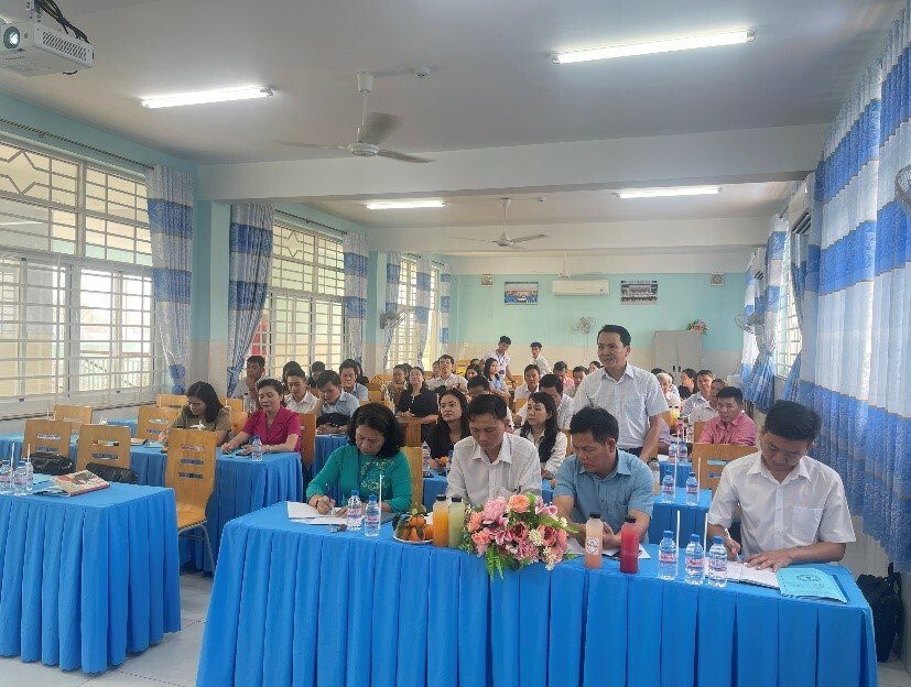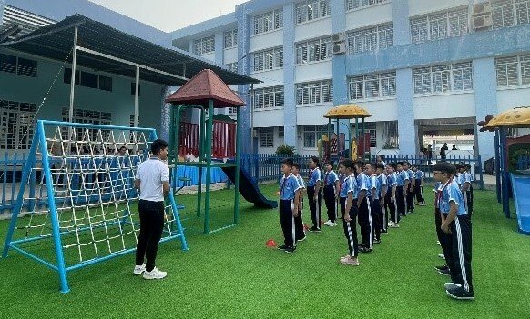Tại buổi sinh hoạt, lãnh đạo các trường và thầy cô giáo đã dự giờ 01 tiết dạy minh họa thể dục tại khu trò chơi liên hoàn của trường gồm: Cầu trượt, chuôi hầm, thang dây, cầu xích, cầu trượt hình xoắn ốc…