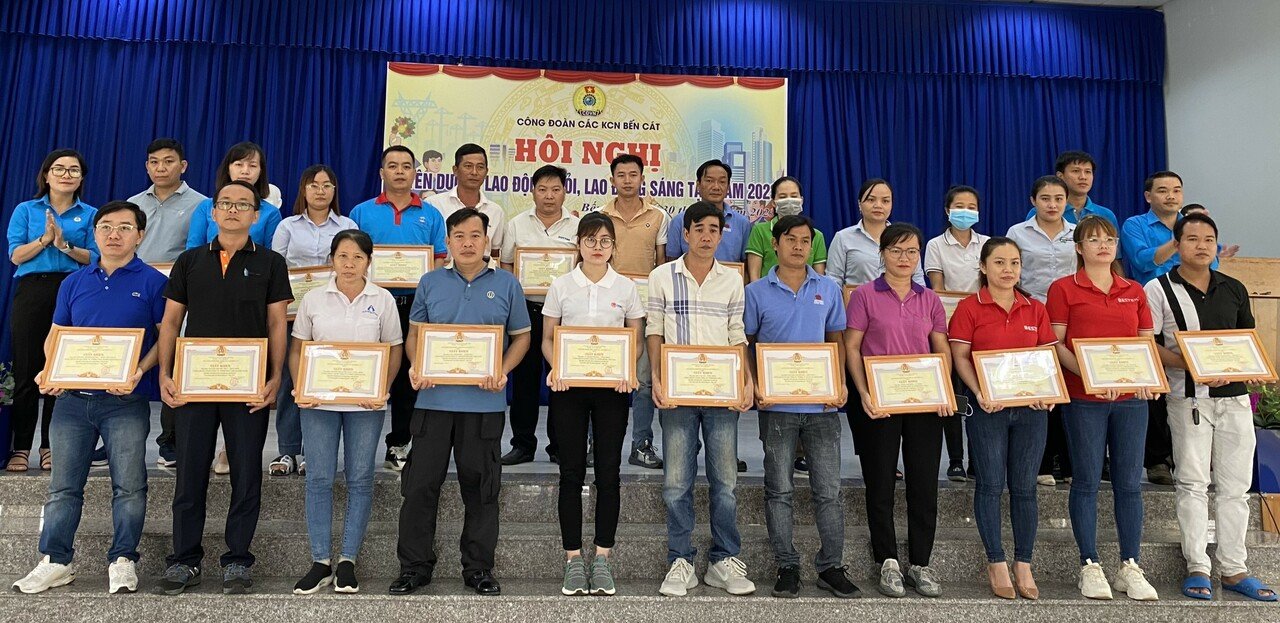 Dịp này, Công đoàn các KCN Bến Cát đã tặng bằng khen và giấy khen cho 310 công nhân lao động có thành xuất sắc trong phong trào thi đua “Lao động giỏi, lao động sáng tạo” năm 2023.