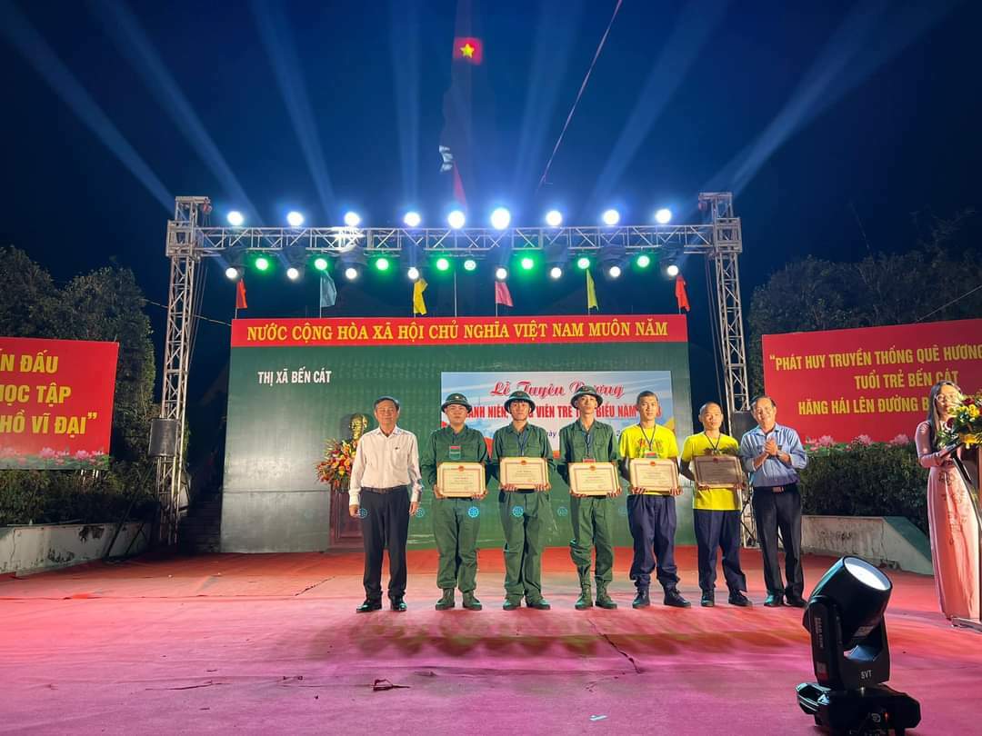 Nhằm động viên, cổ vũ tinh thần thanh niên trúng tuyển nghĩa vụ quân sự năm 2023, tối 07/02, tại Địa đạo Tam giác sắt, xã An Tây, thị xã Bến Cát tổ chức tuyên dương thanh niên, đảng viên trẻ tiêu biểu năm 2023. Đến dự có đồng chí Nguyễn Văn Lộc – Trưởng Ban Dân vận Tỉnh ủy, Chủ tịch Ủy ban MTTQ Việt Nam tỉnh, đồng chí Bùi Minh Thạnh – Bí thư Thị ủy Bến Cát, đồng chí Huỳnh Văn Nghe – Phó Bí thư Thường trực, Chủ tịch HĐND thị xã, đồng chí Nguyễn Trọng Ân – Chủ tịch UBND thị xã, đồng chí Lê Anh Quý – Trưởng Ban Dân vận, Chủ tịch Ủy ban MTTQ Việt Nam thị xã, cùng các đồng chí trong Ban Chấp hành Đảng bộ thị xã, lãnh đạo các xã, phường và 182 thanh niên trúng tuyển nghĩa vụ năm 2023.