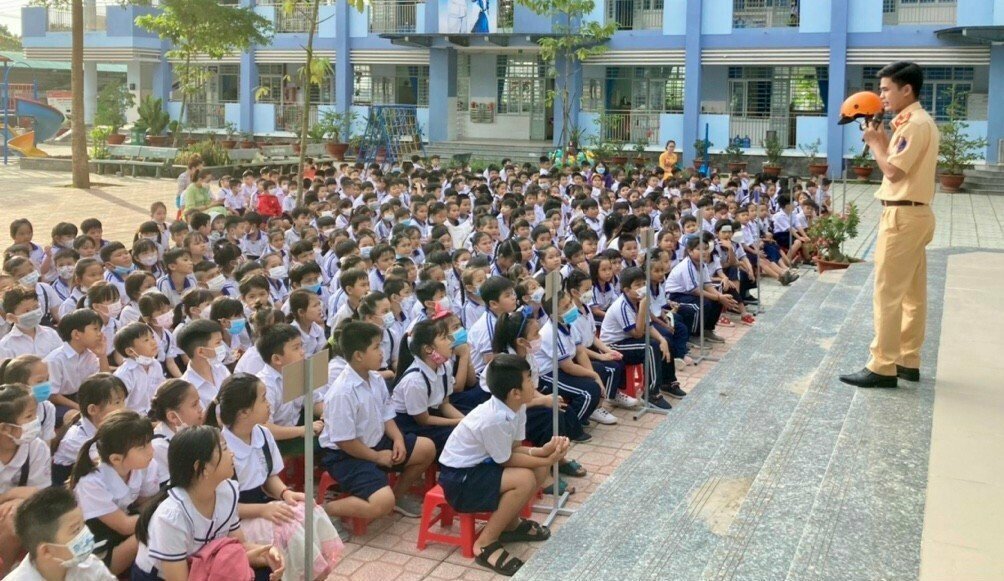 Tuyên truyền Luật Giao thông đường bộ cho học sinh trường Tiểu học An Tây B
