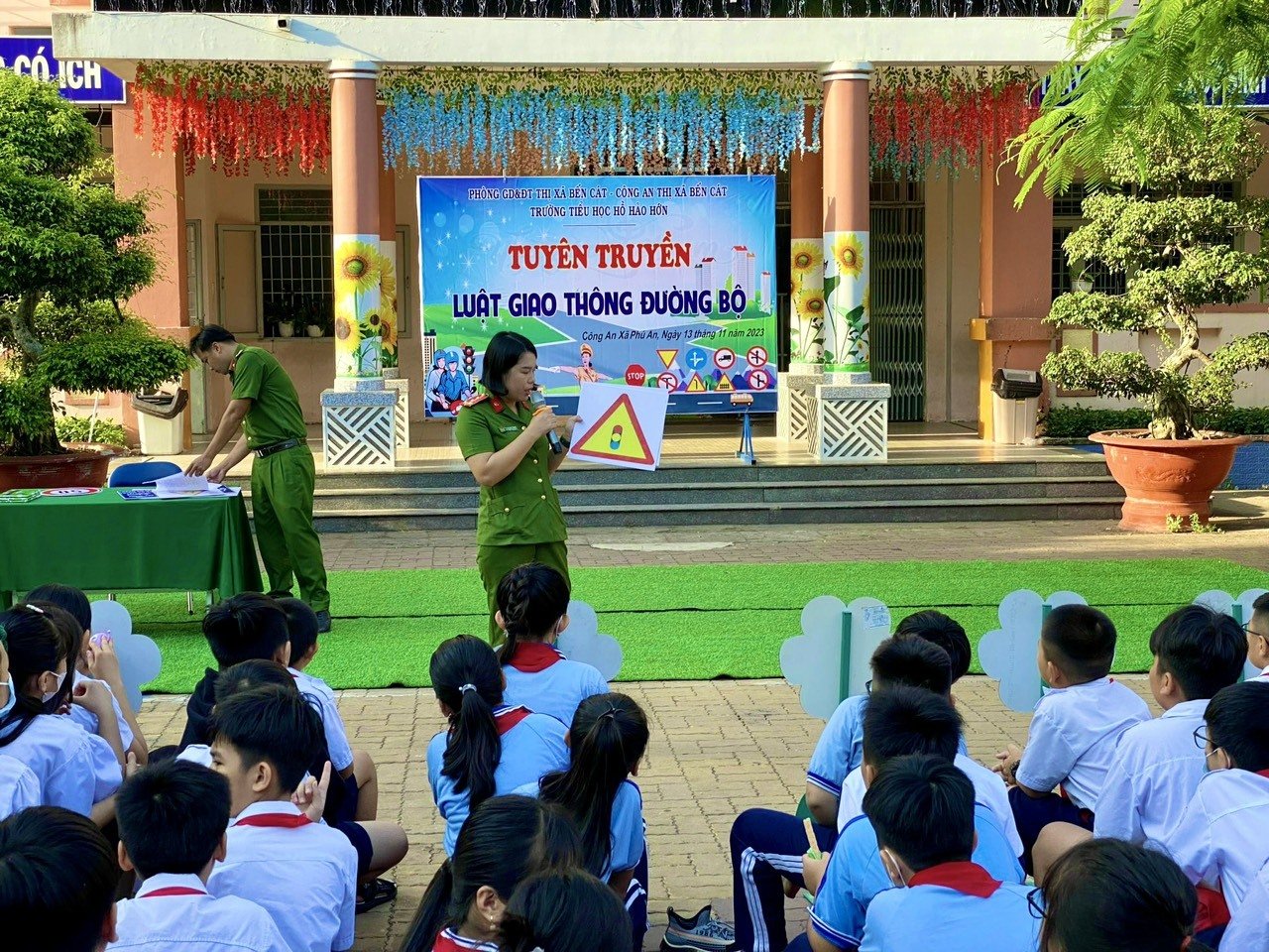 Ngày 13/11, Trường Tiểu học Hồ Hảo Hớn phối hợp cùng Công an xã Phú An tổ chức tuyên truyền Luật Giao thông đường bộ cho học sinh của trường.