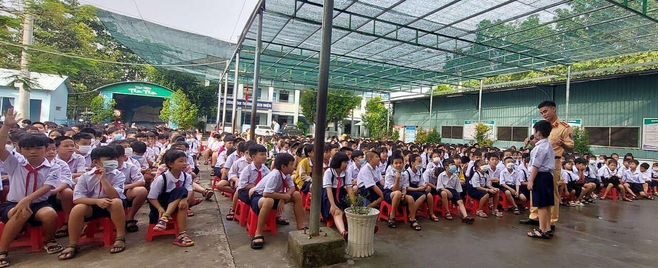 Tuyên truyền Luật Giao thông đường bộ cho học sinh trường Tiểu học Võ Thị Sáu