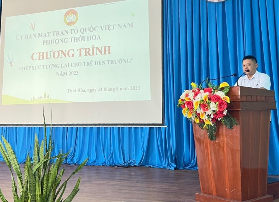 Ngày 24/8, Ủy ban Mặt trận Tổ quốc Việt Nam phường Thới Hòa tổ chức chương trình “Tiếp sức tương lai cho trẻ đến trường” nhân dịp đầu năm học mới 2023 - 2024.