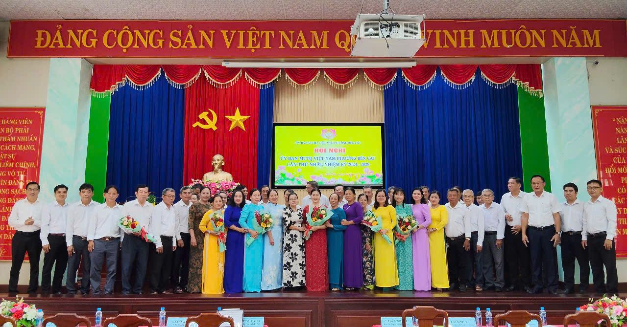 Theo đó, Ủy ban MTTQ Việt Nam phường Bến Cát có 56 Ủy viên; Ban Thường trực gồm có 07 đồng chí, đồng chí Phan Ái Thanh Dung được công nhận giữ chức vụ Chủ tịch Ủy ban MTTQ Việt Nam phường; đồng chí Nguyễn Thị Ánh Thảo – Phó Chủ tịch Ủy ban MTTQ Việt Nam phường đồng thời là Chủ tịch Công đoàn phường; đồng chí Nguyễn Phát Huy - Phó Chủ tịch Ủy ban MTTQ Việt Nam phường đồng thời là Chủ tịch Hội Nông dân phường; đồng chí Võ Thành Dương - Phó Chủ tịch Ủy ban MTTQ Việt Nam phường đồng thời là Bí thư Đoàn thanh niên Cộng sản Hồ Chí Minh; đồng chí Lê Thị Thúy Loan - Phó Chủ tịch Ủy ban MTTQ Việt Nam phường đồng thời là Chủ tịch Hội Liên hiệp phụ nữ phường; đồng chí Nguyễn Văn Lượm - Phó Chủ tịch Ủy ban MTTQ Việt Nam phường đồng thời Chủ tịch Hội Cựu chiến binh phường.