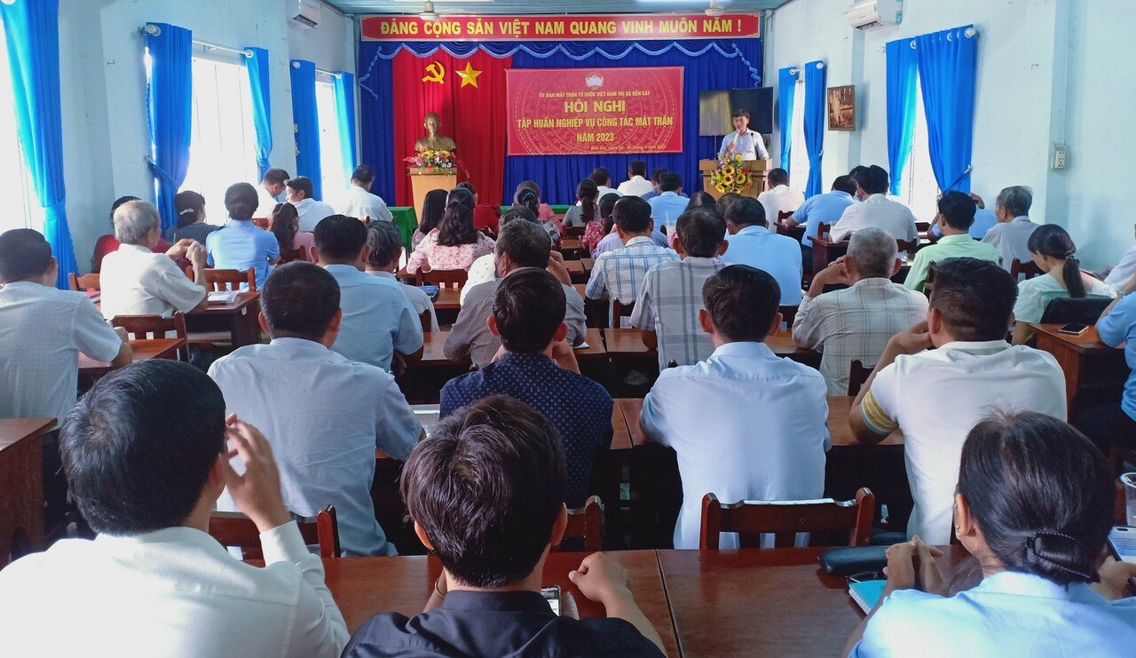 Sáng ngày 24/4, Ủy ban MTTQ Việt Nam thị xã tổ chức tập huấn nghiệp vụ công tác mặt trận năm 2023. Đến dự có ông Nguyễn Trọng Quốc – Phó Chủ tịch Ủy ban MTTQ Việt Nam thị xã cùng hơn 70 cán bộ Ban thường trực Ủy ban MTTQ các xã, phường, Ban công tác Mặt trận ấp, khu phố, Ban chủ nhiệm các mô hình.