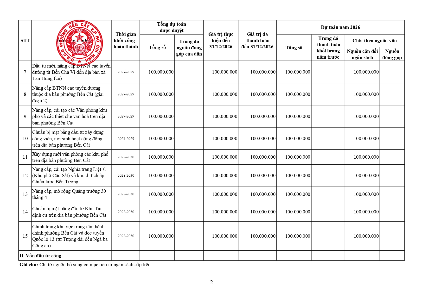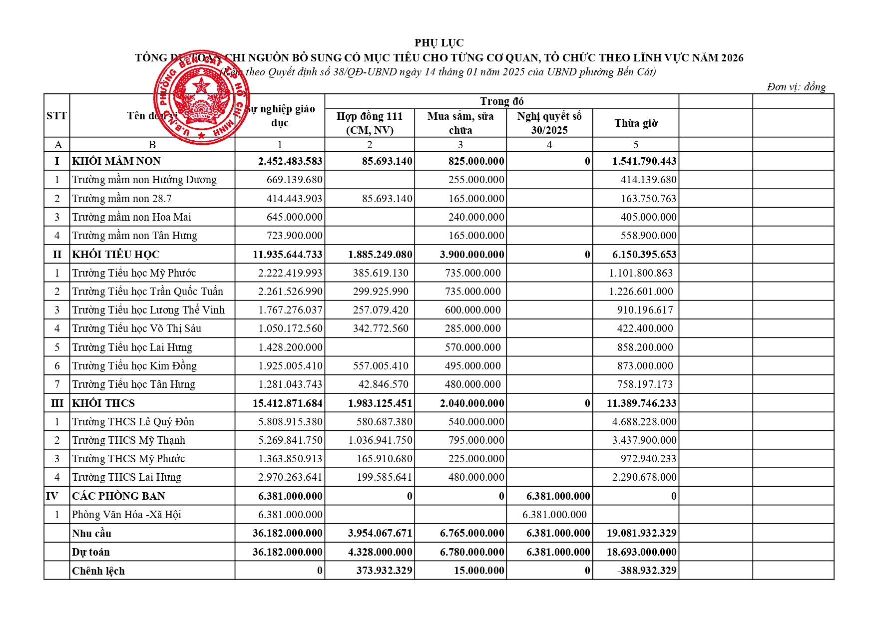 Dự toán thu, chi và phân bổ ngân sách phường Bến Cát năm 2026