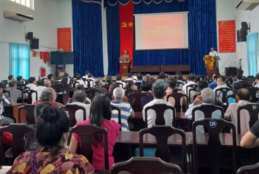 Tham dự hội nghị có ông Hồ Phương Nam - Chủ nhiệm Ủy ban Kiểm tra Thị ủy; ông Ngô Hoàng Sĩ – Phó Trưởng Ban Dân vận Thị uỷ; ông Lê Nguyên Khôi - Bí thư Đảng ủy xã và hơn 100 hộ dân tham dự.