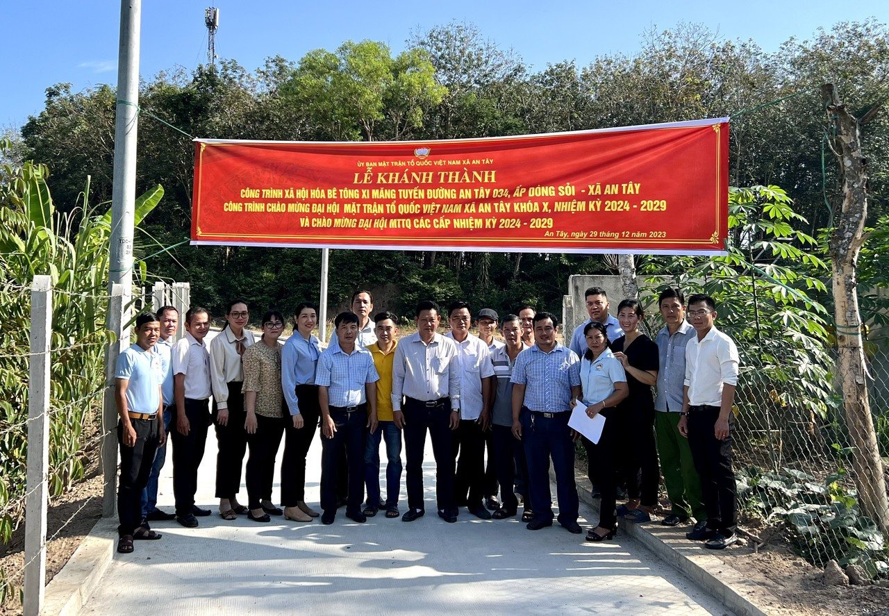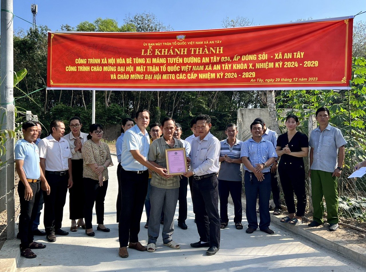 Đây là công trình thiết thực chào mừng Đại hội Mặt trận Tổ quốc Việt Nam xã An Tây khóa X, nhiệm kỳ 2024 – 2029 và chào mừng Đại hội Mặt trận Tổ quốc Việt Nam các cấp 2024 – 2029. Tuyến đường hoàn thành và được đưa vào sử dụng giúp giao thông của người dân thêm phần thuận lợi, an toàn, góp phần xây dựng địa phương ngày càng phát triển, văn minh.