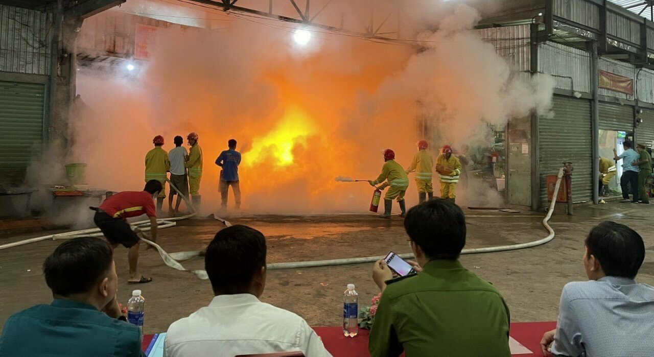 Sau lễ ra mắt, UBND xã đã tổ chức thực tập phương án xử lý tình huống cháy, nổ và cứu nạn, cứu hộ tại Tổ liên gia an toàn PCCC chợ An Tây, ấp Lồ Ồ.