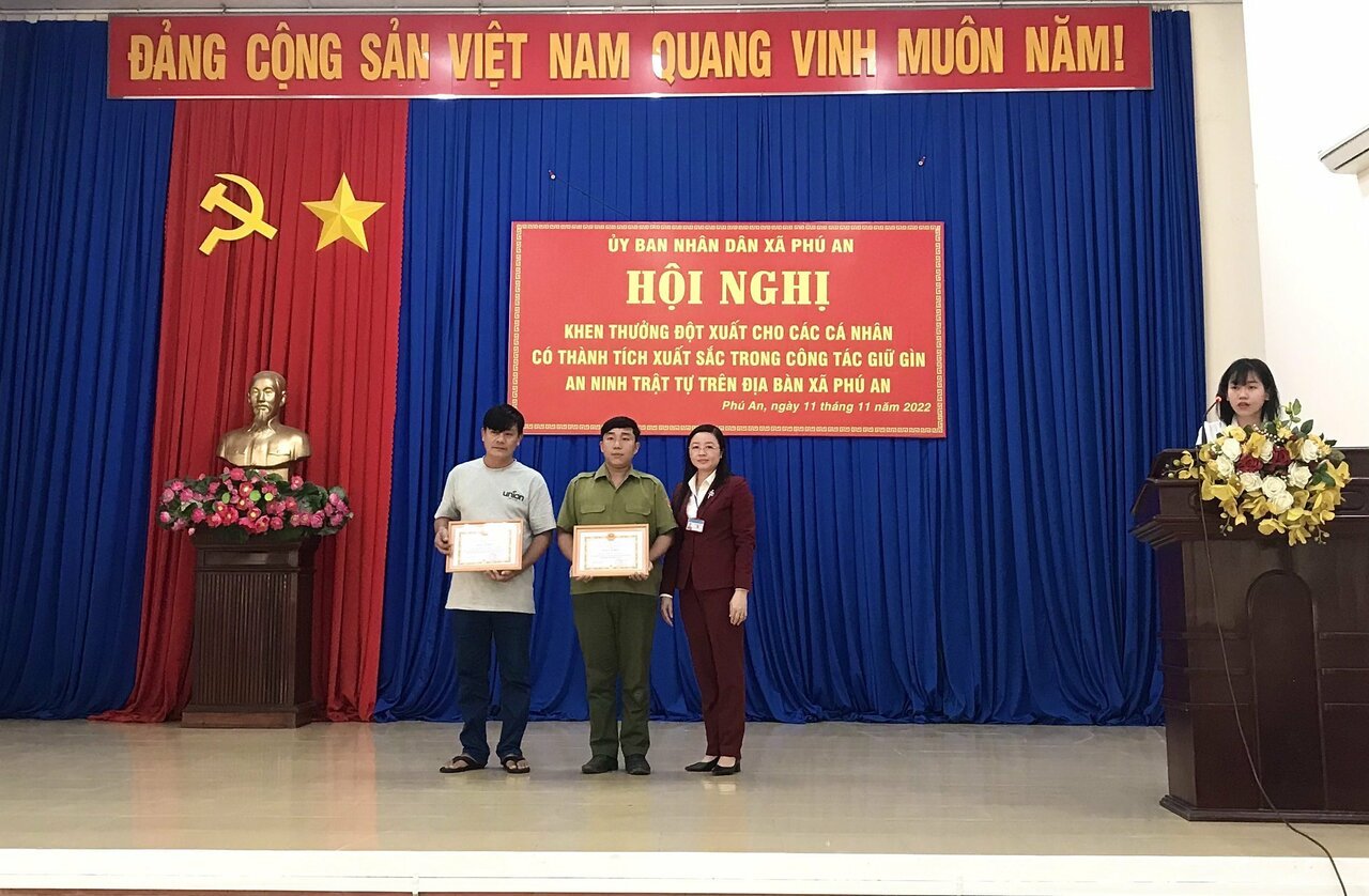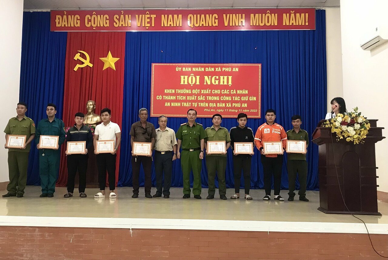 Ủy ban nhân dân xã Phú An vừa tổ chức hội nghị khen thưởng đột xuất cho 02 tập thể và 28 cá nhân có thành tích xuất sắc trong công tác giữ gìn an ninh trật tự trên địa bàn xã.