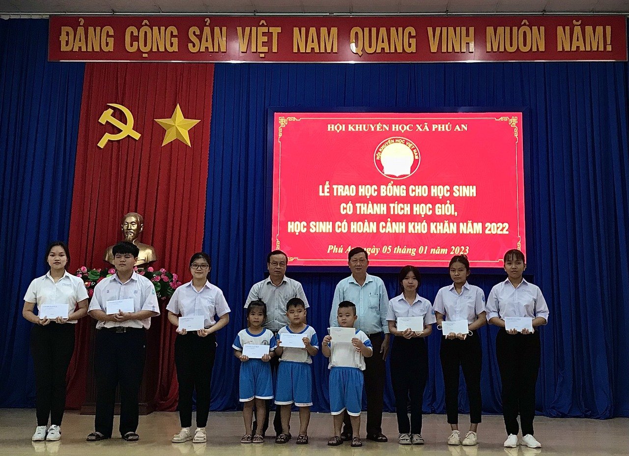 Nhằm đẩy mạnh công tác khuyến học, khuyến tài, xây dựng xã hội học tập gắn với xây dựng môi trường giáo dục lành mạnh, ngày 05/01/2023, Hội Khuyến học xã Phú An tổ chức lễ trao học bổng cho 50 em học sinh đạt thành tích cao trong học tập và các em học sinh gia đình có hoàn cảnh khó khăn vươn lên học giỏi trên địa bàn xã.